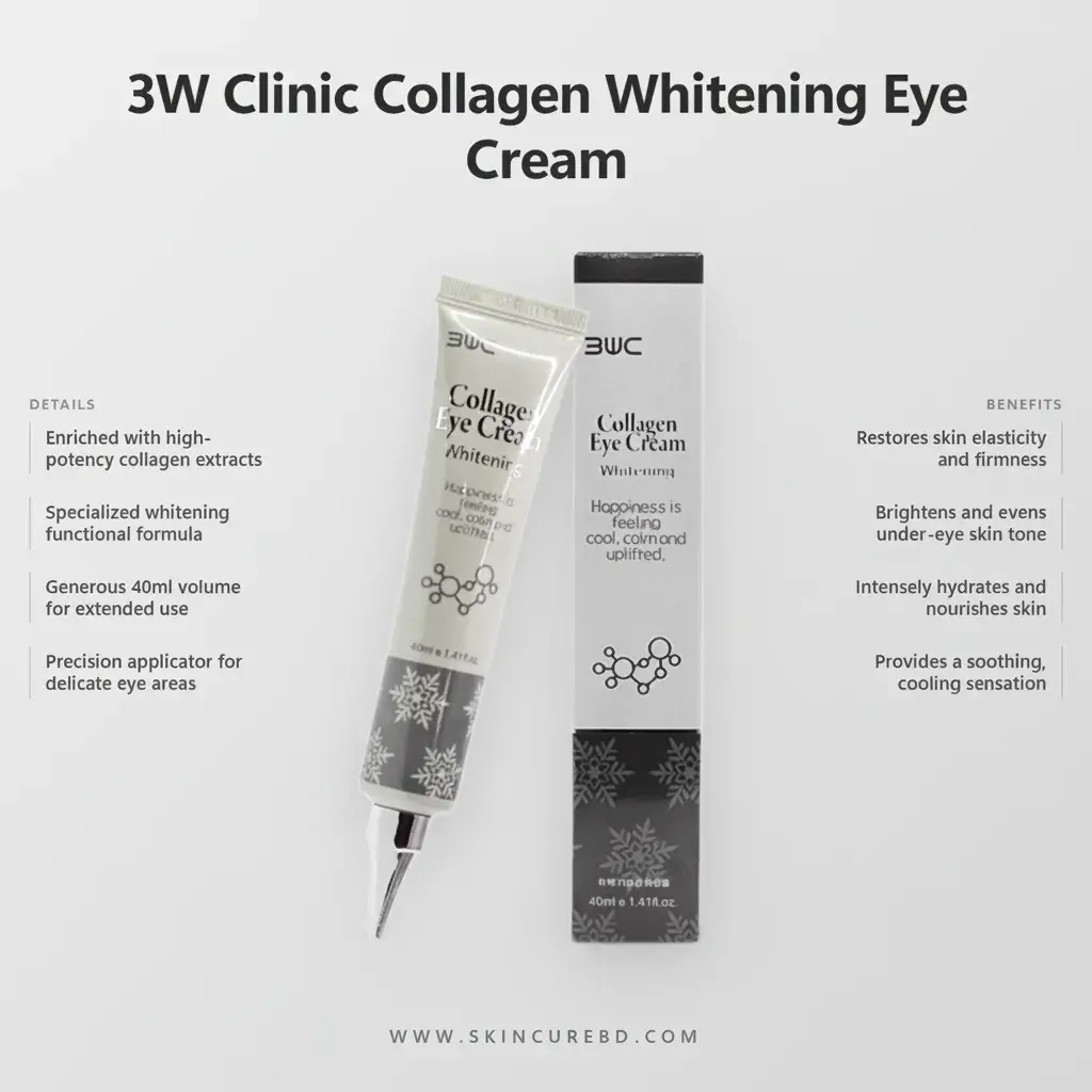 #3WClinic #CollagenEyeCream #WhiteningEyeCream #SkincareRoutine #EyeCare #DarkCircles #AntiAging #KoreanBeauty #KBeauty #SkincureBD #HealthySkin #BeautyTips #EyeCream #BrightEyes #SkincareAddict #GlowSkin #Moisturizer #BeautyRegimen #SkinCareProducts #DailySkincare #YouthfulSkin #SkinElasticity #UnderEyeTreatment #SelfCare #BeautyCare #Hydration #SkincareCommunity #Cosmetics #EyeGlow #SkincareEssentials