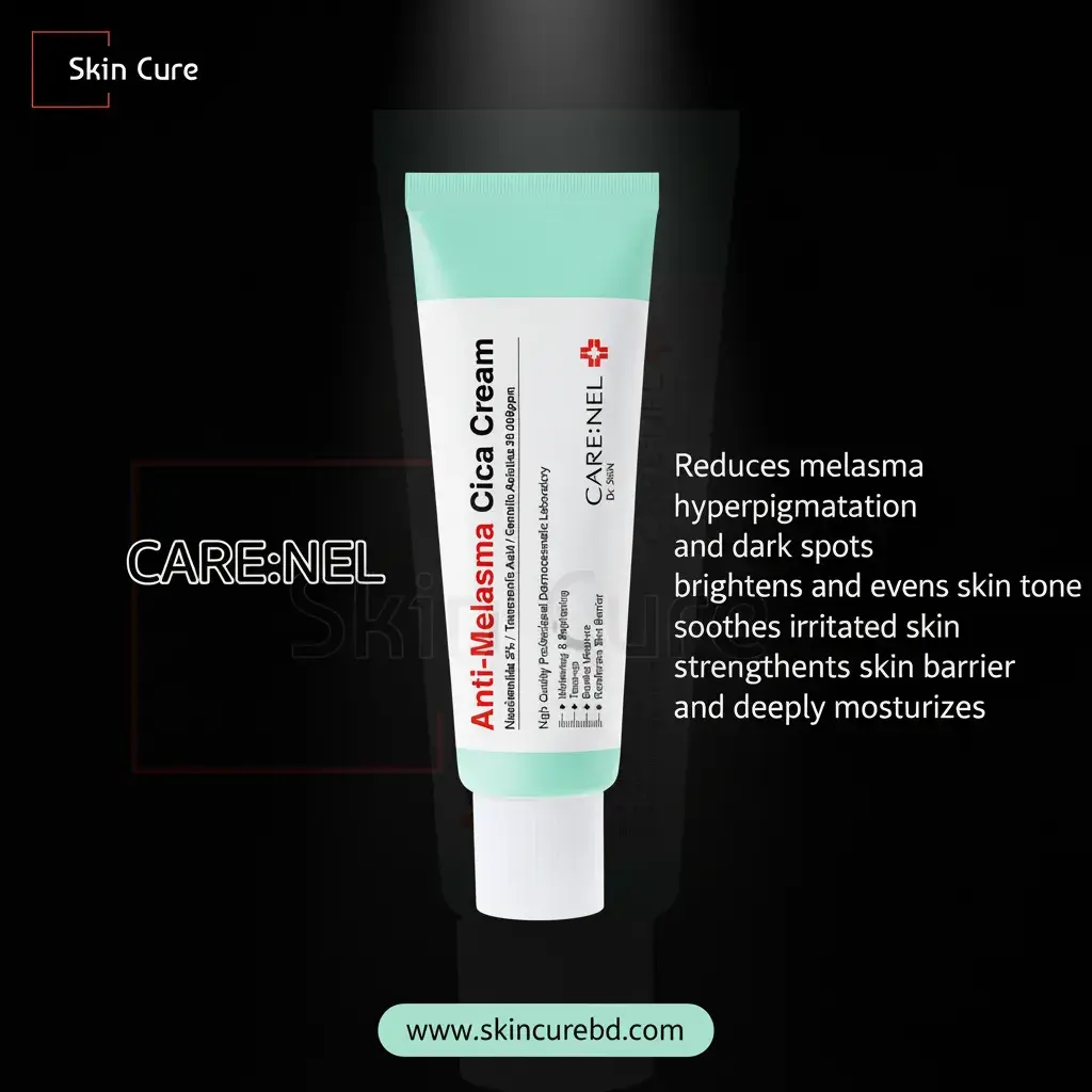 Fade dark spots & achieve radiant skin! ✨ CARE:NEL Anti-Melasma Cica Cream reduces hyperpigmentation & soothes.